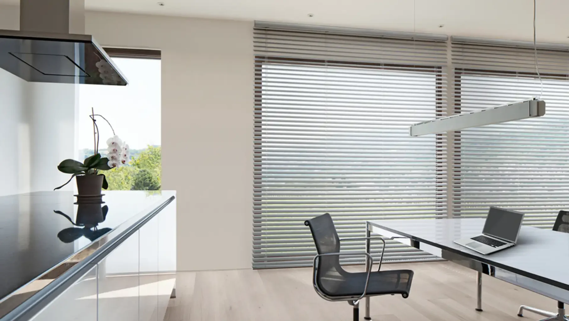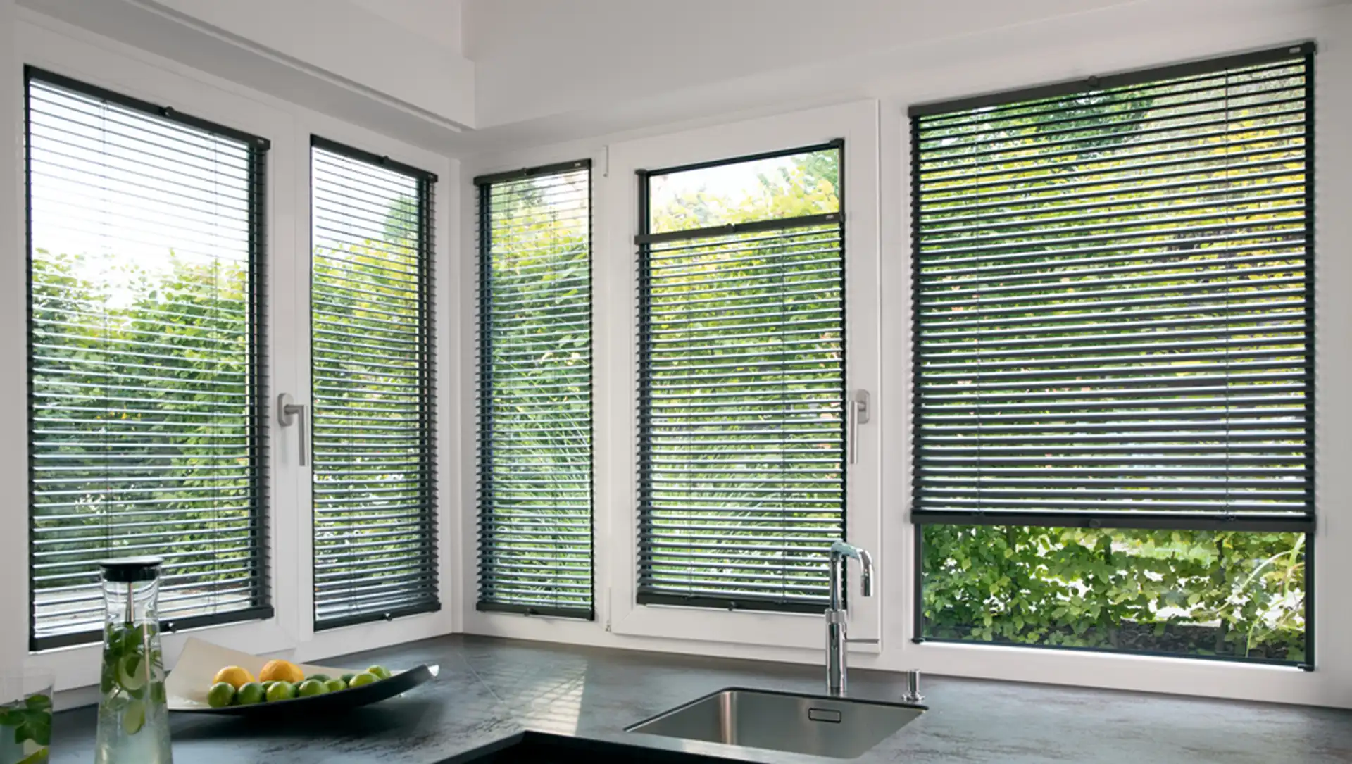 Jalousien ermöglichen präzise Lichtsteuerung und sorgen für mehr Privatsphäre sowie eine angenehme Atmosphäre im Raum.
