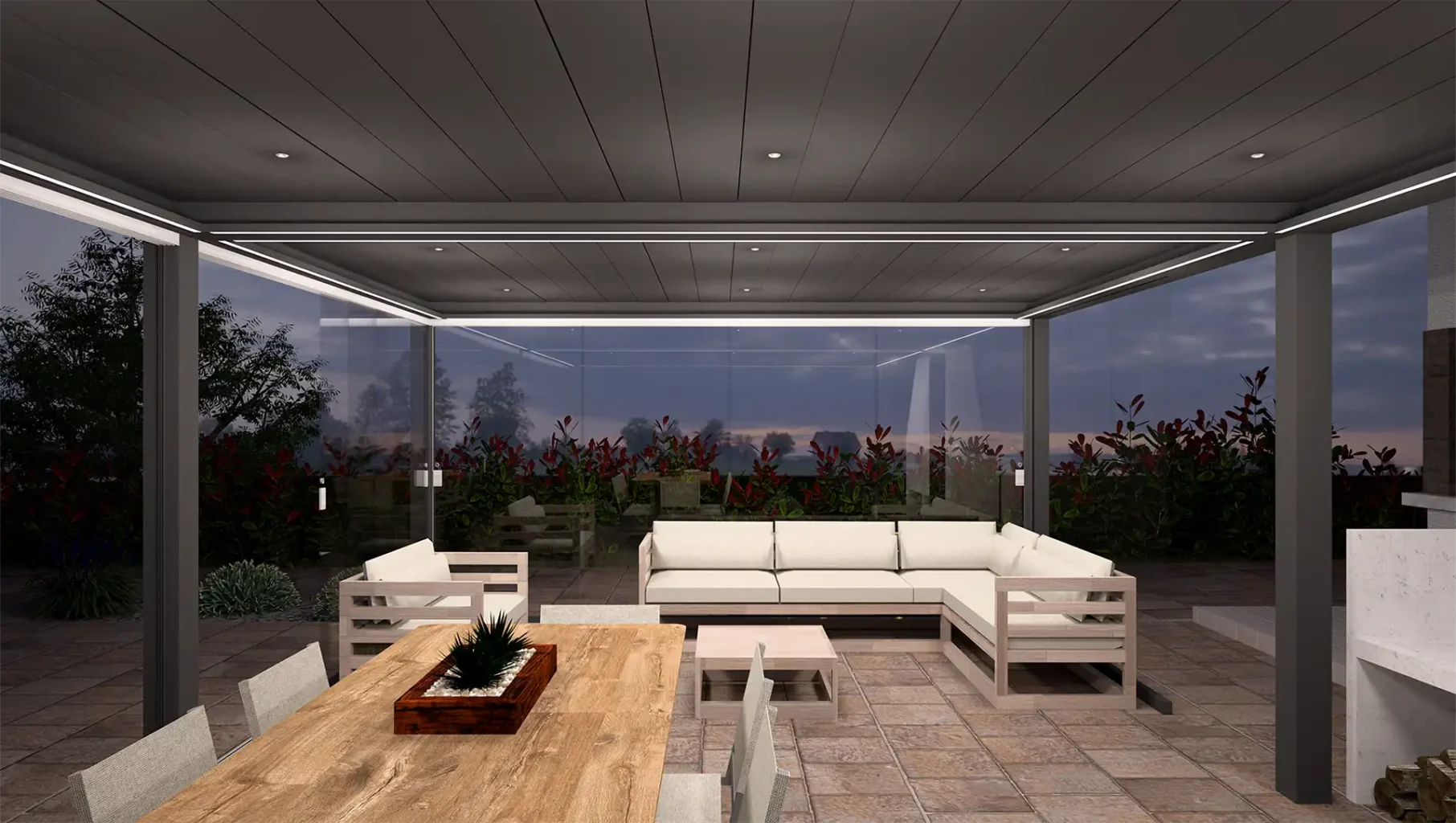 Das Qube Skyline überzeugt als stilvolles Lamellendach mit auffahrbaren Aluminiumlamellen, hoher Wetterfestigkeit und umfangreichen Ausstattungsoptionen wie Beleuchtung oder Glasschiebeelementen. Ideal für alle, die modernes Design und hohe Funktionalität kombinieren möchten.