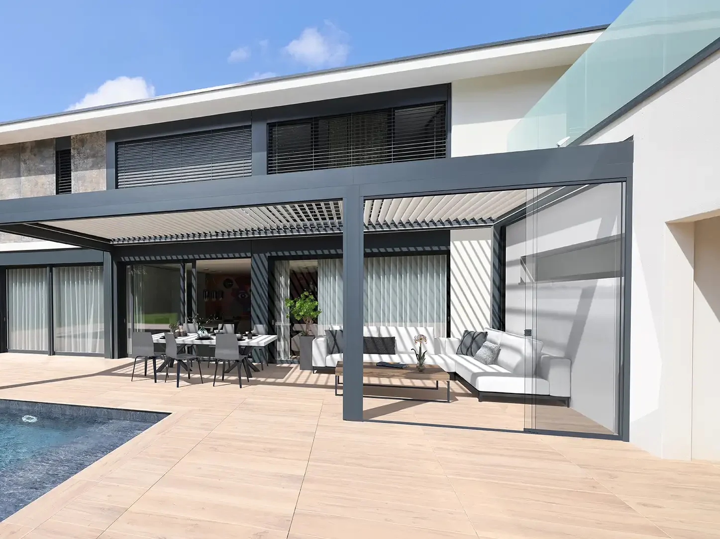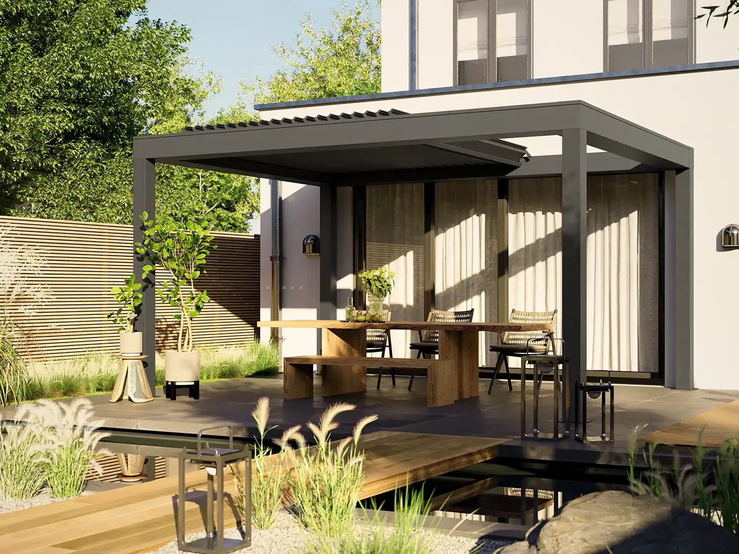 Lamellendächer sorgen für flexiblen Sonnenschutz und verwandeln Ihren Außenbereich in eine gemütliche Wohlfühloase.